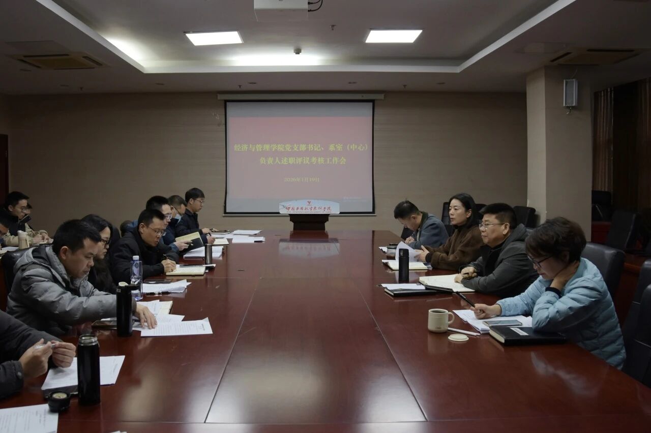 2026-01-22经济与管理学院顺利开展党支部书记、系室主任(负责人)述职评议考核工作本网讯 马代鑫 报道:为深入学习贯彻党的二十届四中全会精神,认真落实新时代党的建设总要求和新时代党的组织路线。2026年1月19日,经济与管理学院在行政楼副楼417会议...