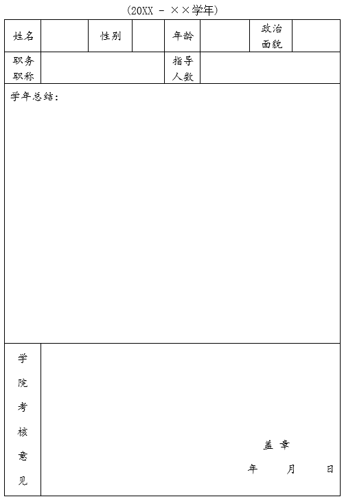2.学院主管教学的副院长负责协调、布置、检查有关工作,每学年就导师的工作情况进行一次考核,考核结果将作为教师职称晋升、评优的依据, 考核合格的导师计算年度教师工作量不低于1学时/生 。并记入教师教学工作档案。
