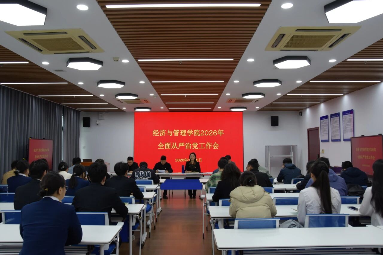 本网讯 马代鑫 报道:3月30日上午,经济与管理学院在5教511会议室召开2026年度全面从严治党工作会。学院班子成员、各党支部书记、各系室负责人、三办全体人员、师生党员代表、全体专兼职辅导员参加会议,会议由学院党委书记张端主持。