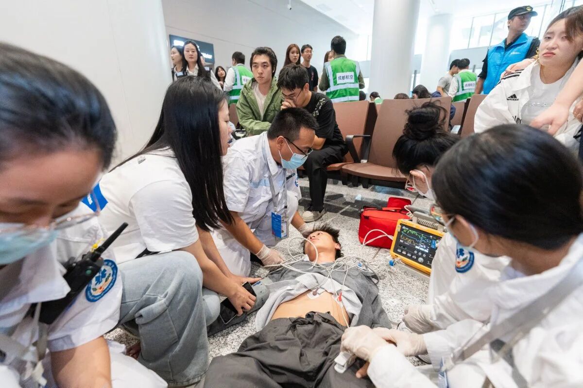 演练过程中,师生们严格按照预案操作,与机场运行指挥中心、地面服务部、公安、医疗等部门保持高效沟通,形成了强大的协同合力。30余个随机触发的导调点(现场争执、突发疾病等)轮番考验,天府机场、成都航空、地服公司、机场公安等工作人员高效处置,2小时完成全部“家属”登记、引导、安抚、转运。