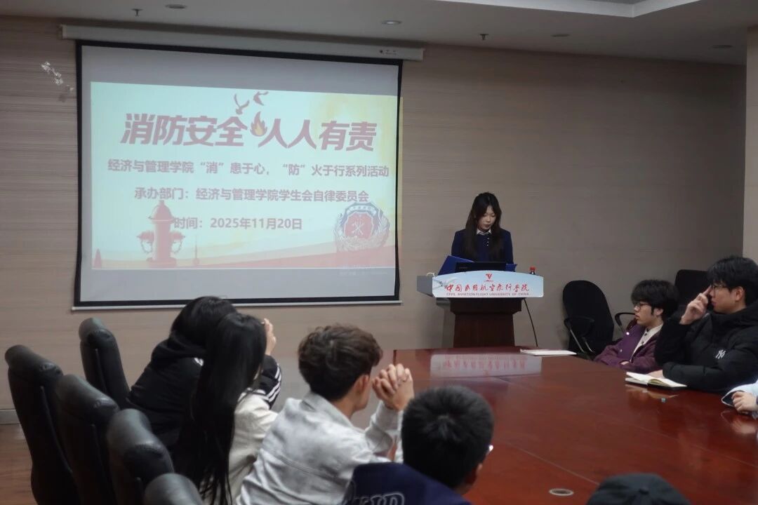 11月20日,经济与管理学院面向2025级全体班长、团支书,组织开展了消防安全主题学习活动——观看消防安全视频。将消防安全意识内化于心,外化于行,共同筑牢班级安全堤坝。